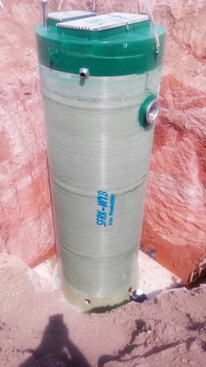 安徽省潜山经济开发区管理委员会东风新村一体化雨水泵站项目 玻璃钢通体材质为高强度GRP复合加强缠绕玻璃钢材质,计算机控制缠绕工艺;泵站自洁底座为GRP加强型玻璃钢闸阀、止回阀为环氧树脂涂层;地面控制柜为不锈钢柜体,带人机对话界面。